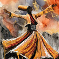 The painting feels deeply Sufi - a whirling dervish suspended between fire and mist, with rust reds, charcoal greys, and gold veins that feel like inner transformation, surrender, and divine longing. The drips below even suggest ego dissolving (fana) — very powerful. In this work, the whirling figure becomes a vessel of devotion - suspended between fire and stillness, earth and sky.