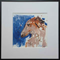 In Borzoi, the artist immortalizes elegance in motion, suspended — the noble hound poised in dignified repose. The elongated form of the dog is rendered with sweeping, graceful lines that mirror its natural refinement. A harmony of whites, silvers, and faint ochres builds a portrait both airy and grounded. The Borzoi’s delicate face and long, silken coat catch the light in layered textures, revealing the artist’s precision and empathy. There is no ostentation here — only quiet majesty, the embodiment of poise and endurance.