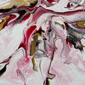 This beautiful round picture is 50 cm in diameter. This image depicts profound, complex structural movements, which, through the composition of colors in deep, dark red and luminous gold, represent moments of thought. Here, the golden thoughts are like flashes of insight, representing shining moments. The color gold, is a warm, shimmering yellow-orange hue that symbolizes luxury, wealth, success, and high status. It represents achievement, divinity, and elegance, frequently used to convey prestige in branding, fashion, and design. Gold is psychologically associated with optimism, masculinity, and wisdom.