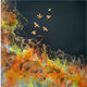 "Escape" is an evocative abstract painting symbolizing freedom, release, and the exhilarating break from constraints. It invites viewers to feel the exhilaration of flight and to contemplate their own journeys toward freedom and self-discovery. The birds are in motion and escaping from the imaginary stormy clouds. The overall mood is one of liberation and boundless possibility capturing the essence of freedom. From fear to exhilaration, the emotions reflect the complexity of moment. Even though the open sky is overwhelming, as their wings spread, they take the flight, an escape from captivity and a realization of freedom, relief, and joy. The artwork features abstract composition dominated by blue and shimmering gold. The background features a blend of cool blue tones with gold creating a harmonious yet energetic atmosphere transitioning from dense stormy blue evoking a sense of rising above turmoil. The artwork is done with ink on synthetic paper using tailored techniques which creates vibrant and rich textures yet subtle appearance.