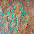Layers of acrylic and mixed media build a weathered surface where time becomes visible. Oxidized copper tones emerge through fractured earthen browns, as turquoise verdigris breaks through like beauty refusing to disappear. The heavy texture evokes peeling metal, corroded walls, and surfaces shaped by years of exposure—damaged, yet quietly luminous. This piece explores decay as transformation, where erosion reveals hidden color, and deterioration becomes a form of resilience. What appears worn and broken carries depth, history, and unexpected elegance.