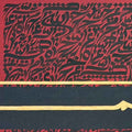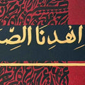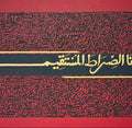 This painting is one of my latest artworks, a vibrant red canvas adorned with striking black calligraphy, featuring the golden Quranic verse, 'Ihdina as-sirat Ul Mustaqeem.' This painting symbolizes the profound importance of following the Divine Path, a guiding light for us as Muslims. Each stroke represents our journey towards success and enlightenment through adherence to the righteous way.