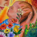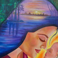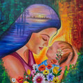"You Are My Light" by Krishna Kuunjikrishnan is a heartfelt oil and mixed media painting that captures the profound and timeless essence of motherhood. At the center of the canvas, a mother gently cradles her infant, enveloping the child in an aura of warmth and tenderness. The woman's expression radiates peace, strength, and boundless love, reflecting the deep emotional connection between mother and child. Her embrace is both protective and nurturing, embodying the sacred bond that begins at birth and lasts a lifetime.