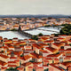 Every city has its own color palette. This breathtaking view of the old city is the reward when you climb more than 280 circular steps in a tower of a cathedral. A stunning rust colored landscape of Praha (Prague). The breathlessness after climbing so many steps just vanishes when one feels the wind in hair. This is a very happy memory from my travel. When we were close to the last steps our daughter tricked us there were many steps ahead! And when we realized this amazing view was just few steps away, we just felt so refreshed. These small moments make your travel special. I had to make a painting of this beautiful city. Rust colored rooftops, river finding its way through the crowded city, so many bridges and the tightly built buildings. It was so much fun to paint this in abstract strokes.