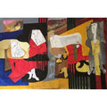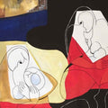 The inspiration comes from the global refugee crisis and the quiet suffering of families uprooted by war, climate change, political instability, and economic hardship. The fragmented figures and shifting landscapes reflect the instability of displacement. The sea in the background symbolizes dangerous journeys, while the barren land suggests uncertainty and loss. The repeated figures seated in colored panels resemble waiting — waiting for acceptance, documents, borders to open, or lives to restart.