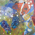 This vibrant painting blends elements of nature and abstraction, evoking a sense of movement, transformation, and interconnectedness. The fiery hues contrast with the cooler tones of the flowers, symbolizing a dynamic interplay between chaos and harmony. The intricate details and layering suggest a journey of growth and resilience, inviting the viewer to explore their own emotions within the composition.