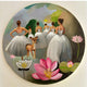 In the ethereal expanse of a lotus forest, where serenity intertwines with the mystic, an enchanting artwork unveils the harmony between woman and horse. Amidst the tranquil hues of pink lotus blooms and emerald leaves, a woman, her silhouette graceful and poised, astride a majestic horse. The woman's flowing attire mirrors the gentle sway of the lotus petals, her presence a seamless extension of the natural beauty surrounding her. With an air of tranquility, she guides the horse through the verdant labyrinth, their connection transcending the physical realm, a symbiotic dance between human and beast. The horse, a creature of strength and elegance, moves with an innate understanding of the sacred sanctuary they traverse. Each step reverberates with the pulse of the forest, a testament to the interconnectedness of all living beings.