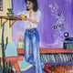 As our eyes wander across the canvas, we are captivated by the unique drips style of painting. Simple and direct, this technique effortlessly captures the essence of movement and emotion, breathing life into the characters before us. Each drip seems to tell a story, adding depth and layers to the overall composition. Kate Bishop passion for justice radiates from her every pore. Her companion Lucky, the pizza-loving pup, embodies playfulness and loyalty, depicted with a softness that melts the hearts. As we immerse ourselves in this charming oil painting, the sweet and gentle tone of the artist's voice whispers stories of courage, friendship, and the touch of magic that exists within the pages of our favorite comics. It is a piece of art that envelops us in its simplicity and elegance, leaving us longing for more.