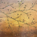 The artwork was created with layered acrylics and metallic applications, building subtle textures that shift as the light touches them. It carries the essence of transformation: the constant cycle of blooming and fading, of becoming and releasing, of the exquisite impermanence that defines life itself. The gentle palette and shimmering gold invite the viewer into a meditative space where fragility becomes strength, and what is delicate becomes enduring.