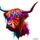 Caledonian Charmers, is a piece inspired by the artist's husband's Scottish heritage. In this digital portrait of an abstract Highland Scottish cow, vibrant paint colors come together to mirror the indomitable spirit of the Scottish people. Just as the vibrant paint colors create a stunning portrait, the Scottish people's dynamic nature weaves a rich tapestry of history and culture. The beauty of Scottish Highland cows is a reflection of their harmonious existence with their surroundings. Their presence exudes a quiet serenity, inviting admiration for their rustic simplicity and the tranquility they bring to the landscape.