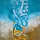 This striking painting features Arabic calligraphy gracefully framing the composition like an ornate border, encircling a central open space that invites stillness and reflection. The fluid yet meticulously structured calligraphy creates a rhythmic frame that contrasts beautifully with the textured backdrop.