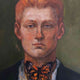 The cat's gaze introduces an emotional depth to the painting, establishing a connection between the viewer and the shared anticipation of the forthcoming interaction. The blue bag, rendered in various shades of blue and grey, creates a visually dynamic and textured surface. In the background, strokes of yellow ochres and oranges delicately mirror the reflective glow of Alfred's eyes, seamlessly tying together the entire composition. This thoughtful use of warm tones against cooler blues not only enhances visual contrast but also contributes to the overall warmth and vibrancy of the scene. "Alfred on a Blue Bag" is a testament to the artist's technical prowess, skillfully blending texture, color, and emotion to create a compelling narrative that resonates with the shared experiences of pet ownership and the unspoken dialogue between companions.