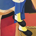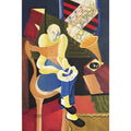 The inspiration comes from exploring how everyday life and artistic rituals (music, games, reading) continue amid external chaos and conflict, highlighting the resilience of human expression and the need for solace during war‑torn periods. The painting employs bold, geometric forms and vibrant, contrasting colors typical of modernist cubism. Shapes are simplified and layered, creating overlapping planes that fragment the scene yet unify the composition.