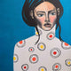 The melancholic look, boldness of limited color palette and the bright copper details. This artwork may portrait mixed feelings. As her body is not well defined, all the attention lies on the gaze, colors and pattern. What is her look telling us? Is it a fright, or reassurance? Is she asking for help, or is it a look of compassion? The viewers decide for themselves. Interestingly enough, more you look at this portrait, more feelings it evokes.