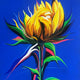 In the captivating oil on canvas artwork titled "Sunflower Field 2" the artist delves into the symbolic realm, drawing inspiration from the Bulgarian band Ostava to craft a visual narrative rich in metaphor and allegory. Positioned at a distance within the field, some figures reach toward the sun while others strive to conceal themselves. The sunflowers surround them, and fragments of the girls' legs peek through the vibrant blossoms. The deliberate aesthetic deformation of the bodies enhances the symbolic representation of the flowers, pushing the conventional boundaries of form to convey a more profound, metaphorical meaning.