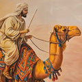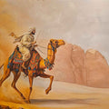 This piece depicts an ancient scene of Arabia in times gone by, with a backdrop of Al Oula in Saudi Arabia and a camel and his rider escaping the storm. The piece is highly detailed and full of energy and movement.
