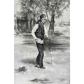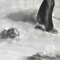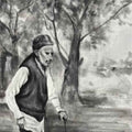 This monochromatic charcoal painting captures the quiet resilience of an elderly man walking with the aid of a cane. His slightly bent posture, thoughtful expression, and steady pace convey both fragility and strength, reminding the viewer of the dignity found in aging. Dressed in simple, traditional clothing—a cap, vest, and loose shirt—he seems deeply rooted in his past, embodying wisdom and endurance shaped by time.