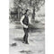 The blurred background of trees and faint shadows creates a dreamlike atmosphere, suggesting memory, nostalgia, and the passage of years. The choice of black and white tones adds depth and timelessness, stripping away distraction and focusing on the man’s journey. His presence feels solitary yet powerful, as if he carries the weight of his life experiences with quiet grace.