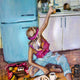 This cheerful painting captures a moment of hope and joy. A beautiful woman stands before floor-to-ceiling windows in the morning, joyfully flinging them wide open. On the other side of the glass, lush foliage stretches endlessly and an ever-present beam of sunlight dances across the scene. The vitality of the woman and the exuberant green of nature speak to the invigorating energy of a new day and all it brings. Her spirit is inspiring and encourages us to open our own windows to the green world outside, allowing it to permeate our lives with positivity and light.