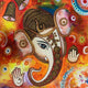 This painting celebrates the entrancing power of spiritual love. Hearing his music, gopis (cow-herding girls famous for their unconditional devotion to Krishna) flocked to join him and together they danced with unbridled joy.