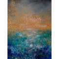“Luminous Depths” An immersive, atmospheric abstract that captures the shifting moods of a deep-sea horizon. Created with acrylic, marble powder, and modeling paste, this piece features a high-relief, tactile surface that brings a physical presence to the canvas. The ethereal turquoise sky transitions into a profound navy base, bridged by a horizontal expanse of burnished gold. The heavy texture catches highlights and casts soft shadows, evoking the feeling of misty sea spray and mineral-rich earth.