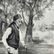 Old Man Walking in the GardenOceanic Sunset