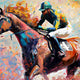 "Race Day Gallop," a captivating digital abstract creation by the talented artist Afaq Aziz, transports viewers into the heart of a thrilling horse race. Aziz employs the digital palette knife technique with expert precision, skillfully crafting a mesmerizing depiction of two racehorses and their dedicated jockeys. In this remarkable artwork, Aziz's digital palette knife strokes dance across the scene, creating a sense of fluidity and motion that mirrors the thunderous gallop of the horses. The technique infuses the piece with a palpable energy, capturing the essence of the race in a burst of dynamic abstraction. The two racehorses, their forms rendered with grace and power, surge forward with unwavering determination.