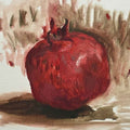 In Pomegranate Full, the artist captures the serene perfection of a fruit poised at the height of ripeness — a world contained within a single orb. Its rich, velvety skin glows with deep crimson and muted gold, reflecting a quiet inner radiance. The surface is rendered with tender realism, every nuance of texture hinting at the life it conceals: a multitude of seeds, each bursting with sweetness, hidden beneath a taut, protective skin. The background, softly blurred and atmospheric, isolates the fruit in contemplative stillness, allowing it to command space and significance.
