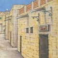 Al Fahidi Historical Neighbourhood (Al Bastakiya) is Dubai's oldest heritage area, which allows visitors to glimpse the traditional life and experience Dubai's pearl-diving era before the discovery of oil. This painting depicts a typical Arabian afternoon solstice when the marketplace is calm. The artist uses Naples yellow, burnt sienna, burnt umber, and black to paint the sturdy and rugged structure of the old buildings of Al Fahidi. The heavy shadows of purple, burnt umber, and whites under the exhaust pipes and thresholds of the buildings suggest the time of the day when the temperature soars and the busyness lulls.