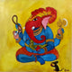 Ganesha is the formless Divinity - encapsulated in a magnificent form, for the benefit of the devotee. As per Hindu mythology, he is the son of Lord Shiva & Goddess Parvati. Ganesha's big belly represents generosity & total acceptance. Although Ganesha has many attributes, he is readily identified by his elephant head. He is widely revered, more specifically, as the remover of obstacles and thought to bring good luck; the patron of arts and sciences; and the deva of intellect and wisdom. Ganesha's upraised hand depicts protection. It means, " Fear not, am with you. " And his lowered hand, palm facing outwards means endless giving as well as an invitation to bow down. This is also symbolic of the fact that we will all dissolve into earth one day. Ganesha also has a single tusk which signifies one- pointedness.