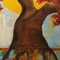 Inspired by wabi-sabi, this richly textured painting features a blossoming tree against a glowing sun, symbolizing the beauty of transience and imperfection. With earthy tones, vibrant reds, and a dreamlike atmosphere, it adds depth and serenity to any interior.