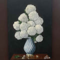 The painting invites the audience to pause and appreciate a moment of stillness — a moment where nature speaks in whispers rather than words. The choice of a classic vase adds a timeless touch, grounding the composition in tradition while letting the blooms take center stage. “Snow Flower” reflects a harmonious balance of light, shadow, and texture, offering a peaceful visual experience that evokes purity, renewal, and quiet beauty.