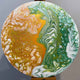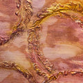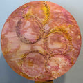 This beautiful round picture is 60 cm in diameter. Summerbrise is a picture made with several layers. In the background several colors were mixed and wiped. After drying, the circles were made with model paste. The paste design was refined using a chopstick in the “Heidi-Rotation” technique. Afterwards, the circles were given another layer of color. These circles give the image a 3D effect. The color orange is primarily associated with energy, joy of life, creativity, and warmth. As a mixture of red (energy) and yellow (cheerfulness), it has a mood-lifting, sociable, and optimistic effect, promotes communication, and is often perceived as energizing.