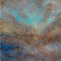 Layers of raw texture and muted pigment evoke the quiet power of the earth in flux. Sculptured surfaces and mineral tones—rust, sand, stone, and traces of oxidized blue—suggest erosion, time, and resilience. The painting feels both ancient and alive, like a landscape shaped by wind and water, inviting the viewer to read its surface as a record of natural transformation.