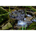 In the center, the water gathers momentum as it tumbles over a dark, polished rock, breaking into a frothy burst of white. Around it, the stream ripples in shades of amber, silver, and muted blue — a layered palette of movement and light. Delicate branches and leaves frame the scene from above, gently hanging into the frame as if observing the stream’s slow conversation with the earth. The entire image feels intimate and alive, a hidden corner of the forest where everything moves softly, naturally, and endlessly.