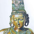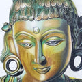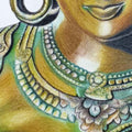Inspired by ancient Indian temple sculpture, this work reimagines sacred feminine iconography through a contemporary drawing practice. Using layered color pencil, the artist recreates the tactile depth of carved stone and oxidized bronze, blending burnished gold with emerald undertones to evoke both divinity and time-worn patina. Rather than depicting a specific deity, the figure embodies serenity, resilience, and transcendence — distilling the essence of India’s sculptural heritage into a modern visual language. The interplay of light and shadow creates a sculptural presence within a two-dimensional surface, bridging tradition and contemporary expression in a quiet yet powerful meditation on cultural memory.