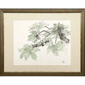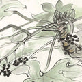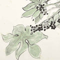 “Fatsia” expresses a serene balance between strength and grace through the fluid language of traditional Japanese ink painting. Broad, lobed leaves and clusters of dark berries are rendered with deliberate yet effortless brushstrokes, allowing their natural forms to emerge against open space. Muted greens and soft blacks create a meditative atmosphere, emphasizing stillness and restraint. The work captures nature in a tranquil moment, inviting quiet reflection and conveying a timeless sense of harmony.