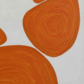 Marieny unfolds through a warm dialogue of color and form. Soft beige shapes meet vibrant orange tones, creating a composition that feels both radiant and grounded. The contrast between these hues evokes warmth, light, and the gentle energy of sunlit landscapes. Organic forms move across the canvas with a natural rhythm, their layered brushstrokes revealing the movement of the artist’s hand.