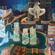 The inspiration comes from exploring how everyday life and artistic rituals (music, games, reading) continue amid external chaos and conflict, highlighting the resilience of human expression and the need for solace during war‑torn periods. The painting employs bold, geometric forms and vibrant, contrasting colors typical of modernist cubism. Shapes are simplified and layered, creating overlapping planes that fragment the scene yet unify the composition.
