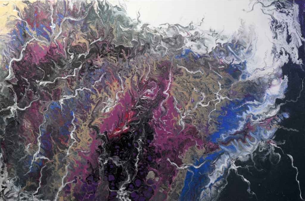 “Torrent" is a captivating masterpiece that skillfully conveys a rich tapestry of emotions through a slender, meandering stream of colors, ultimately leading to a radiant white light. Viewers embark on a captivating odyssey through a diverse range of feelings, with each color representing a unique facet of the human experience. The stream's graceful path mirrors the ever-evolving nature of our emotions as we navigate life's intricacies.