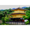 This photograph captures the timeless beauty of Kyoto’s Kinkaku-ji — the Golden Pavilion — gleaming softly against the tranquil greens that cradle it. Bathed in gentle daylight, the temple’s gold-leaf façade shimmers like sunlight solidified, its glow mirrored on the still surface of the surrounding pond. Each tier of the structure, from the dark lacquered base to the luminous upper levels crowned by a phoenix, tells a story of harmony, craftsmanship, and reverence.