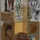 This is an abstract mixed media painting on canvas.