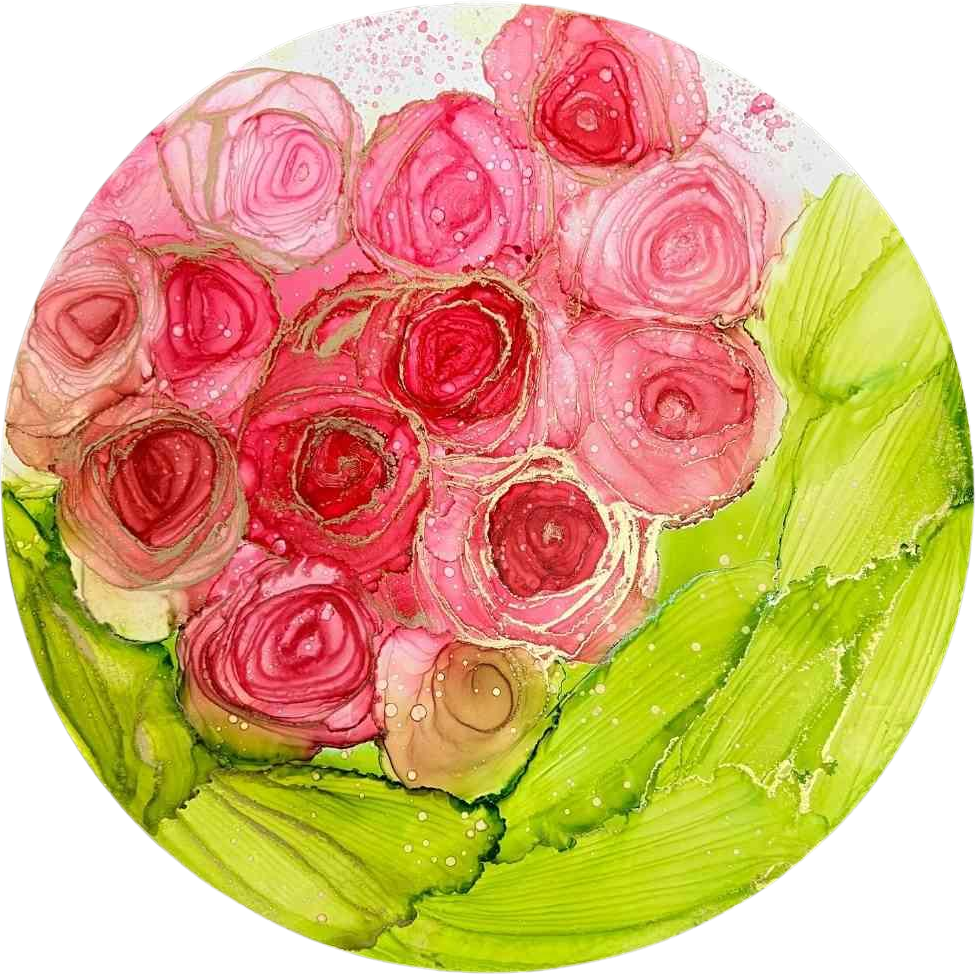 Having it as a part of my palette always results in a fun and peppy piece, as is this alcohol ink on round Nara paper. My favorite part about working with alcohol inks is the freedom it permits me to have fun and express myself truly and freely.